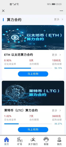 除了租赁矿机云挖矿,在铭启航APP的用户也可以抢购算力合约来获取收益,与矿机一样,不同的算力合约在收益率、投资周期、起购金额等方面有所差距,用户可以结合自身能力与需求进行购买。