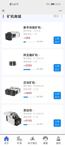 在铭启航APP的矿机商城内,用户可通过租赁来获取矿机的使用权。不同矿机型号、使用期限与自身收益是有差异的,因此费用也不同。用户可根据自身情况与需求,租赁不同类型的矿机挖矿,以获得更好的收益。