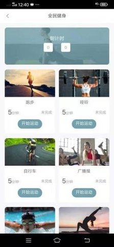 1.为用户提供了跑步、哑铃、自行车、广播操等等的运动项目,用户可以根据自身的需求按需进行选择。软件还为用户提供了在线的倒计时功能,十分的贴心智能。