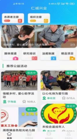 仁诚兴业app一款能够帮助我们进行公益报名的app,简单的操作方式加上简洁的页面让我们能够随时找到自己需要的内容,感兴趣的朋友快来下载吧