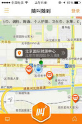 消费者端试用版为“随叫随到”,首次下载的用户可以点击右上角“登录”进行验证码登录并设置账号密码。然后点击“叫”即可进入“要点儿什么”界面开始叫货,点击下一步进入“有什么要求”界面填入送货地址和其他需求后,确认发送订单。具体见如下图示: