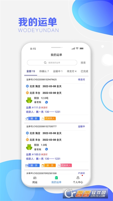 3)整车、零担物流都好用,回程车货运往返都可接单;