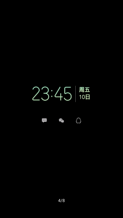 息屏显示:在不点亮整块手机屏幕的情况下,利用cpu控制屏幕局部亮起的像素点,来显示时间、来电、消息、电池信息、推送消息等内容,让用户很直观的就能看到需要的信息,减少用户操作手机的步骤,带来便利。