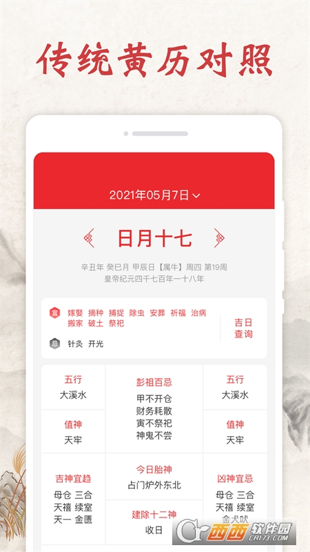 3、提供公农历转换工具,方便查询详细的农历信息,还能查询生辰八字;