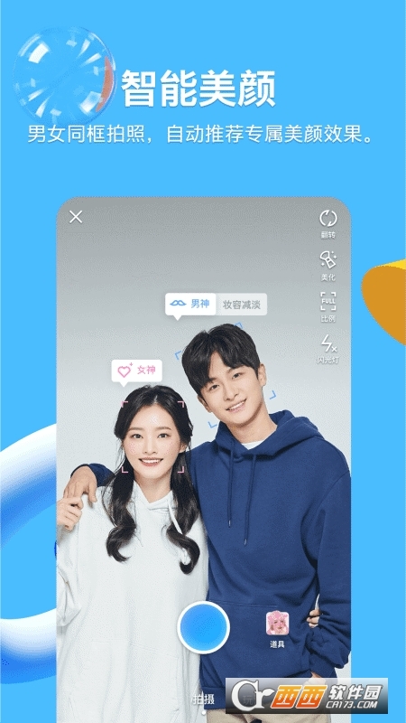- 新增智能美颜功能,男女同框拍照时,自动推荐专属美颜效果;