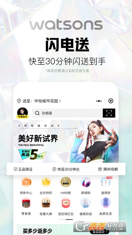 屈臣氏APP全新改版,足不出户也可享受门店优惠活动了!美妆个护正品,快至30分钟闪电到手,更快更方便!