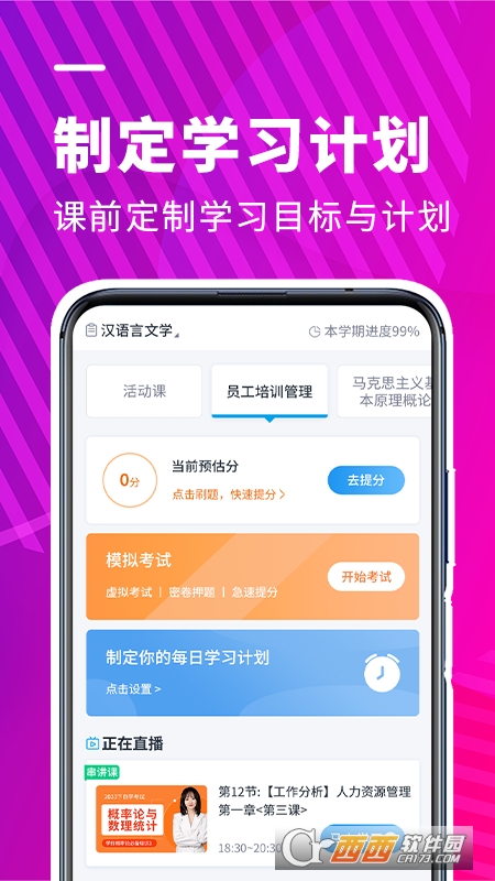 4、随课附带相应的课程表、学习资料、课件、随堂考、录播课程;即使没有时间参加直播课程学习,还可以利用碎片化时间、通过手机随时随地进行学习。