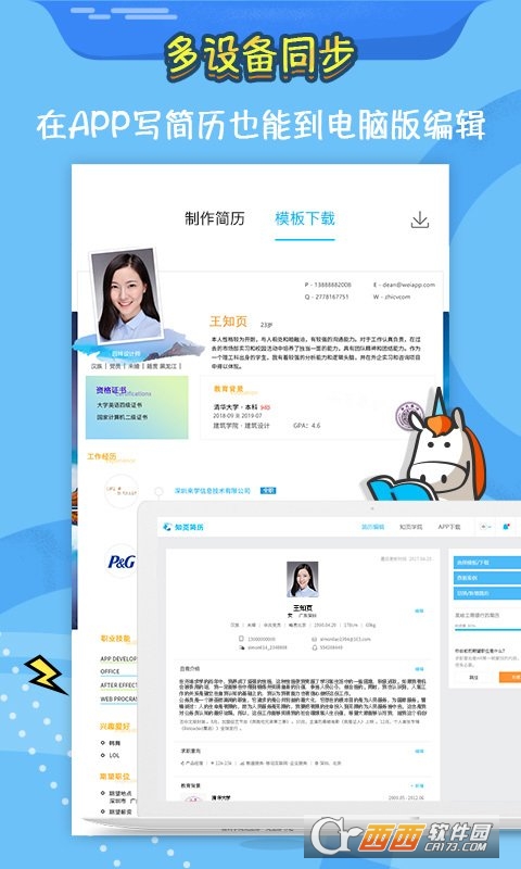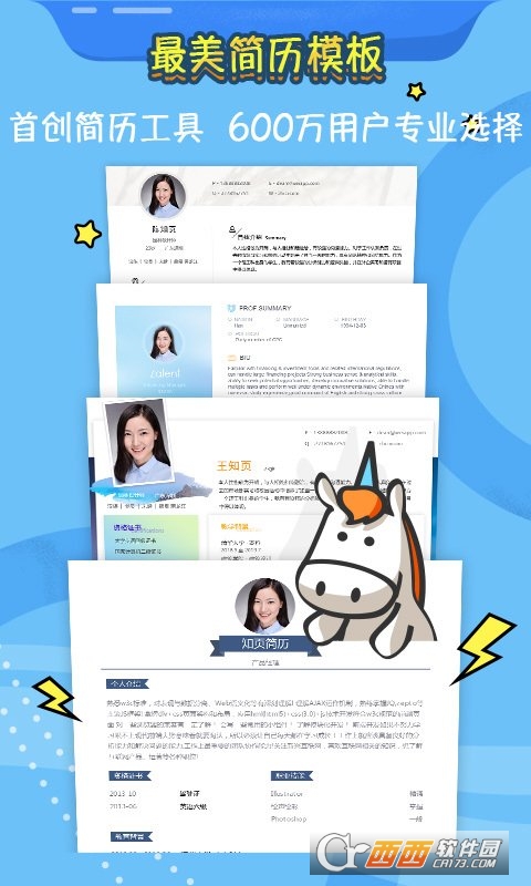 全球首个可以在手机上完成简历流畅编写的App,独有的所见即所得简历制作方式。移动端输入,随时编写导出,云端永久免费保存。