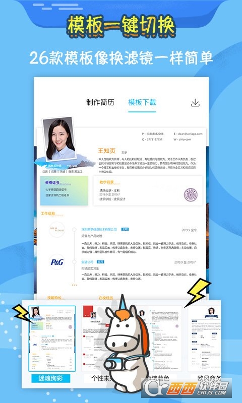 由世界500强企业HR和设计师共同制作,专业又高颜值的简历模板。换模板跟换滤镜一样简单。