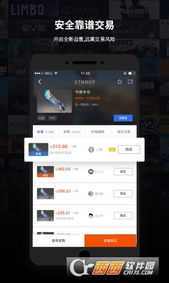 stmbuy电竞饰品交易平台客户端是一个集电竞饰品、游戏买卖于一体的虚拟物品交易平台,stmbuy电竞饰品交易平台客户端包括DOTA2、CS:GO、PUBG、H1Z1等热门饰品,游戏涵盖steam、PS4、Xbox、origin等平台热门游戏.STMBUY以先进的技术实现了方便、快捷、安全的线上交易.买虚拟物品就来STMBUY!