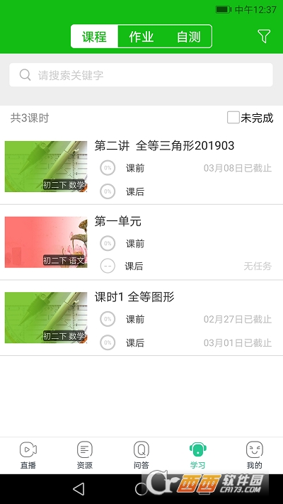 学习中心:学生可随时随地,在线完成教师布置课程,在线完成作业,在线自主评测,错题可以随时订正,自主学习微