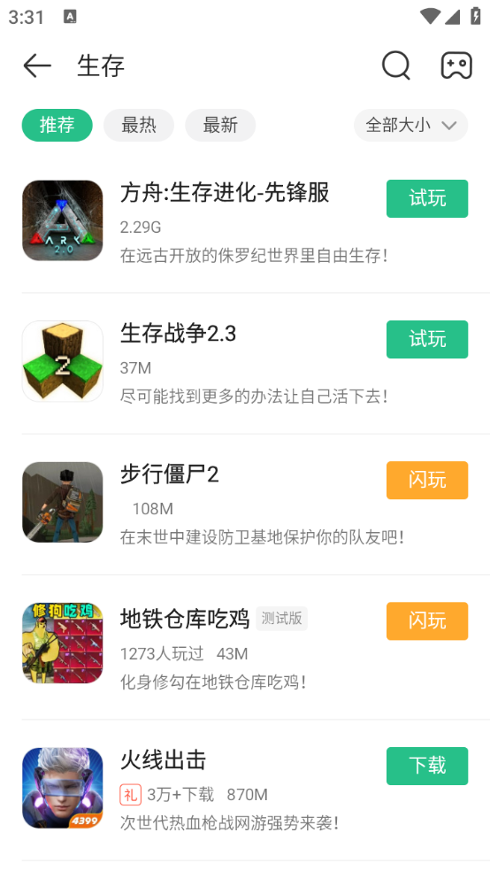 2、点击单机,选择你自己喜欢的,点击后方的下载即可下载手机上开始玩耍。