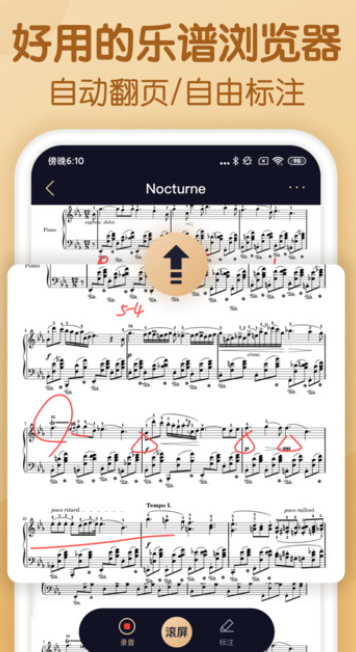 2、智能练琴让你在家练琴就可以享受到优质的练琴老师,只需要打开相应的曲子,点击练琴模式,就可以跟着曲子来练习,还可以自动翻页;