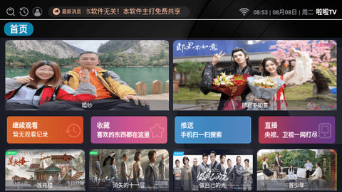 啦啦TV一款非常不错的影视播放软件,用户无需登录就能够观看各种影视作品,所有的影视资源都是免费的,并且里面还有各种影视榜单,帮助用户快速发现优质的影视资源,同时覆盖面积非常的广泛,不管是哪个国家的影视剧用户都能够在这里找到。