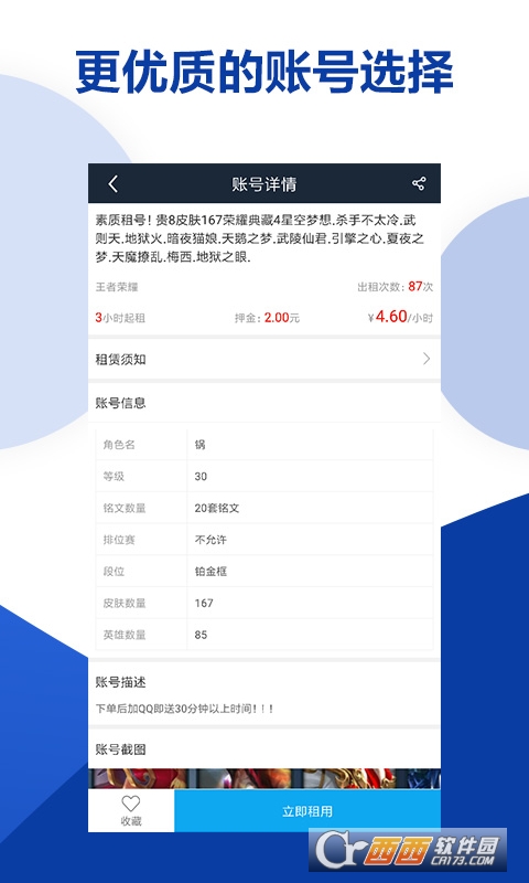 可以在这里出租游戏账号,也可以租赁游戏账号;