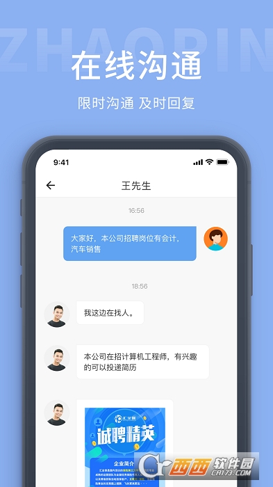 在线沟通,限时沟通,及时回复,平台是可以轻松去进行求职沟通。