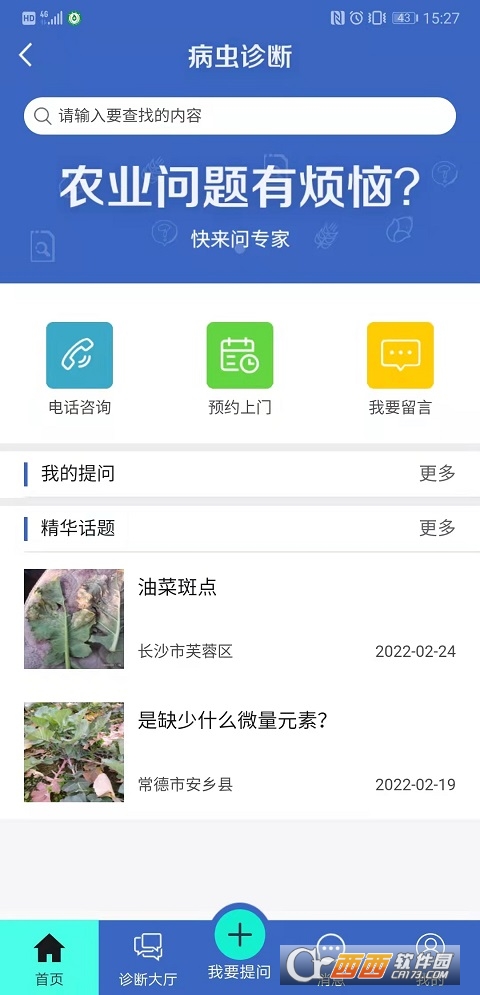 湖南植保app是一款针对湖南省全省农民开大的病虫自主诊断系统,平台上面拥有很多优秀的农业专家,种植户可以在手机app上面进行线上咨询,获得更加科学化的病虫防害及治理措施,需要的可以来鳄斗163手游网湖南植保app进行使用
