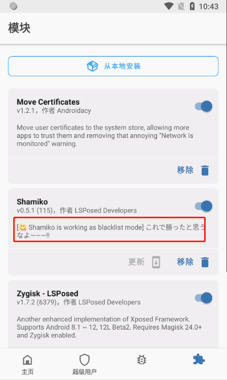 与Magisk配合使用的优秀模块,作为一个Magisk模块,Shamiko可以更深度地、更有效地实现ROOT权限的隐藏。