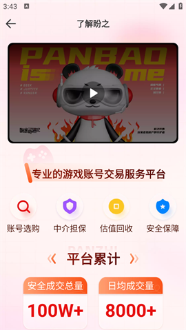 盼之代售官方正版是一款专业可靠的游戏账号交易平台,各种类型的账号资源应有尽有,包含王者荣耀、和平精英、蛋仔派对等热门手游,支持在线比价,为你推荐更多性价比超高的优质账号,全程都有平台客服介入,任何疑问都可以直接提出,买卖双方都经过实名认证,全方位保障你的权益安全。有着贴心的新手购号指南,帮助大家快速掌握交易流程,需要买卖账号的小伙伴不妨下载试试吧。