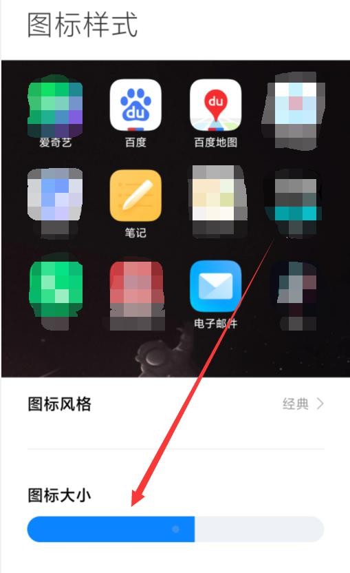 3.在图标样式页面通过滑动条选择合适的图标大小,返回桌面即可看到调整完成。