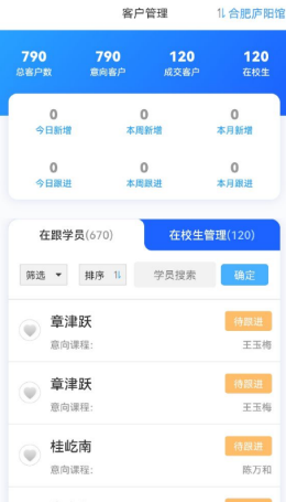 1,教培堡云校app通过完整的大数据网络模式来进行所有数据的综合管理,所有的数据都会进行软件上的汇总和上传,让用户可以查看包括学员信息以及客户的信息。
