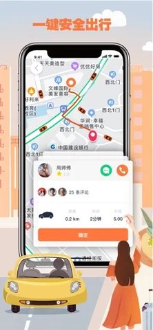 3、手机上即可叫车,只需等待片刻就能上车,快速到达目的地。