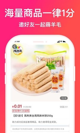 用户可以通过平台进行选购,拼团通过还来那个商品,同时还有优惠的返利活动,可以邀请好友一起薅羊毛,同时还有超优惠的返利活动,感兴趣的朋友快来下载吧!
