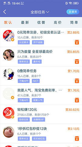 牛帮APP是一个完成任务就能赚零花钱的应手机软件,除了完成大量简单热门的任务外,还可以发布悬赏任务,让平台下的人帮你完成任务,从而赚取差价。各种类型的任务,从简单到困难都有,难度也随单价而变化,做完就可以领取赏金,还有三级下线任务提成奖励,快来下载试试吧!