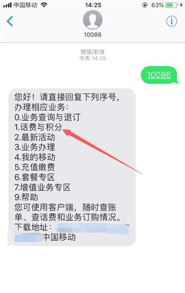 2、通过发送短信,直接编辑10086到10086,然后根据提示回复相应数字,就会收到短信通知你的积分余额,如图所示。