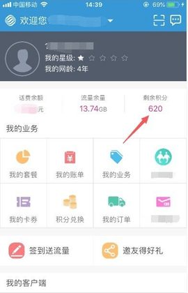 5、进入个人中心之后,就可以看到剩余积分了,如图所示。