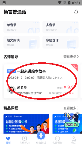 1、打开我们手机中的畅言普通话APP,找到我们想要报名的课程点击进入。