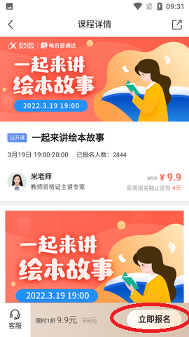 2、进入课程详情界面,点击软件右下方的【立即报名】功能按钮,即可完成报名。