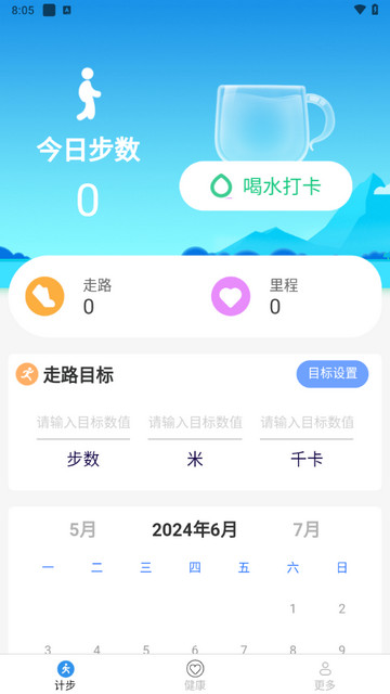 健康爱计步是一款专注于健康管理的软件,集运动计步和健康管理于一体,致力帮助用户可以更加高效的管理个人健康,通过应用可以进行喝水打卡,记录自己每一次喝水的信息,以便能每天喝满八杯水,保持良好的饮水习惯,自己每一天的走路数据也能在线详情了解,掌握运动步数、行走里程和消耗的卡路里,以便能更加严格的要求自己每日完成目标任务,让自己拥有一个健康的身体。