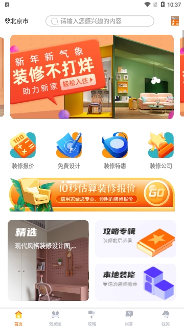 【设计攻略装修知识】建材选择、家具搭配、装修小知识。海量攻略文章让你变家居大神。问答模块业主装修公司直接交流。