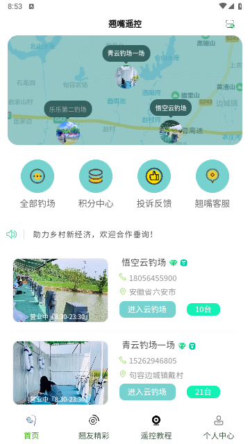 翘嘴云钓鱼是一款云钓鱼软件,许多渔民聚集在这里查看各种渔场信息。他们可以随时在线查看钓鱼地点,轻松在线筛选,根据自己的要求在线搜索,帮助用户更好地找到自己想要的渔场,为用户提供优质服务。喜欢钓鱼的朋友们,快来下载钓鱼吧。