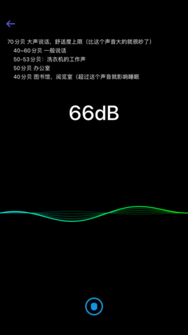 1、是一款非常棒的噪音测试软件。软件可以轻松地测出你目前所在位置的噪音分贝;