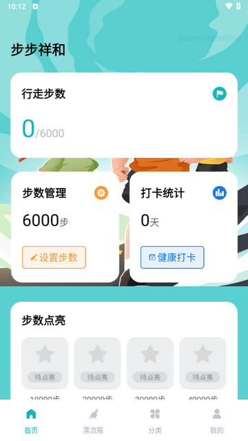 步步祥和是一款可以助力用户健康运动和生活的应用软件。这款软件里面有很多优质、实用的功能设置,用户在手机上安装这款软件后,软件即会实时记录用户的行走步数,还提供了步数点亮的功能,让用户看见自己的走路步数并收获成就,同时,用户可以在软件上给自己制定步数目标,每天达到自己设置的目标,养成良好的健康运动习惯。