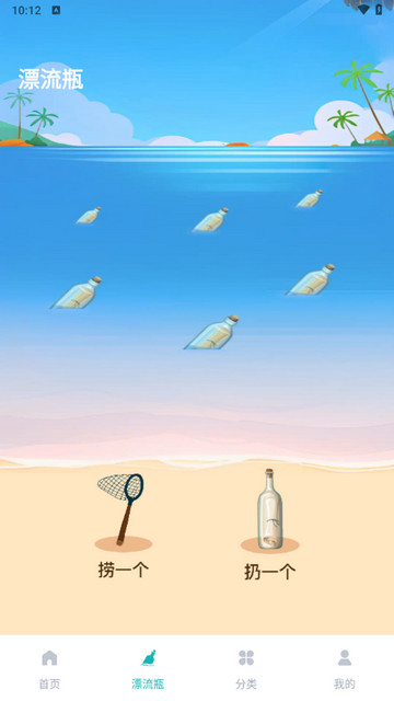 4、扔漂流瓶,支持扔漂流瓶,用户可以将烦恼写进漂流瓶并扔掉,快速摆脱烦恼。