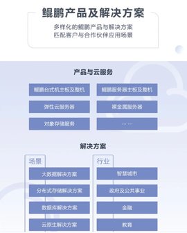 2、鲲鹏产品及解决方案:多样化的鲲鹏产品与解决方案,匹配客户与合作伙伴应用场景;