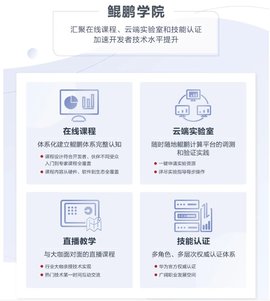 1、鲲鹏学院:汇聚在线课程、云端实验室和技能认证,加速开发者技术水平提升;
