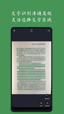 灵活选择:手指流畅顺滑,即可分块选择需要的文字,想要哪段点哪段;识别结果可编辑且选择复制到各种app中使用。