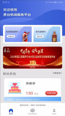 随着茅台售酒业务的发展,茅台机场现有人工开单及售酒模式已经无法满足茅台机场售酒业务的开展,主要功能包括移动端活动酒的预约、系列酒的预约、里程积分查看及兑换。