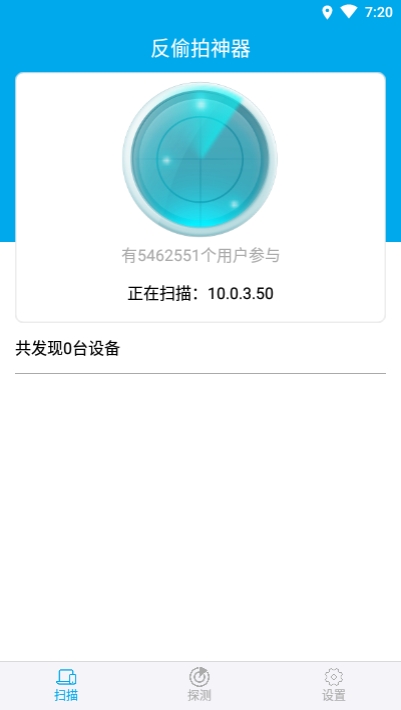 反偷拍神器(针孔摄像头探测器),一款专门用来探测附近是否有隐藏摄像头的功能软件,一般在入驻酒店时使用,查看周围是否有隐藏的针孔摄像头,确保自己不被偷拍。反偷拍神器app目前已升级至最新版本,基本上能准确识别绝大部分的摄像头类型,确保用户的居住环境安全。