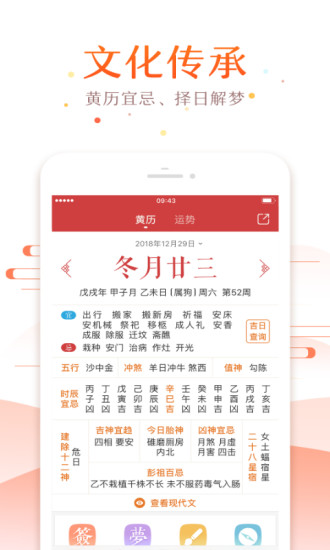 日历:黄历宜忌、节日节气、吉日查询、历史查询;