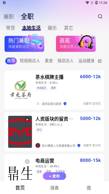 聘播播APP是一款专为直播行业所打造的一款主播招聘软件,这里的所有岗位都是和直播行业挂钩的,如果你对直播行业感兴趣的话,这款软件是非常适合大家的,本地生活、带货、娱乐、其他等不同类型岗位都可以找到,感兴趣的话快来下载吧!
