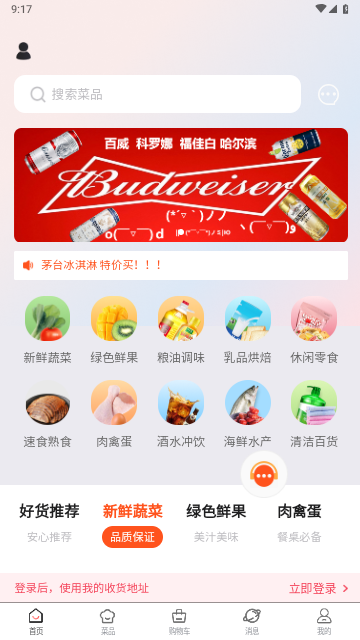 软件所提供的各种商品种类齐全,涵盖了:蔬菜、水果、肉类等