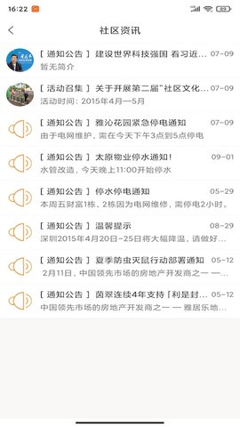 3.社区资讯及时向业主和客户推送物业公告、温馨提示、社区活动等消息。允许每个小区发布不同的通知公告、社区活动等信息,定向推送消息。