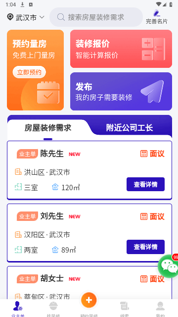 2、海量设计单在线可接,装修客源神器业主装修入口,直接面对业主,完全解决装修客荒问题!