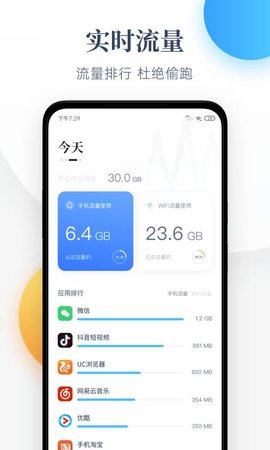 实时计算统计手机应用程序流量消耗情况,助你最大限度提高移动数据流量使用效率,节省流量;