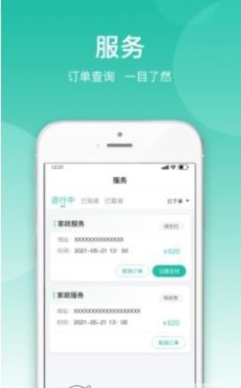 2、订单消息,一目了然,在使用各种家政服务的过程中,所有的订单信息和实际情况都可以进行把握,明细清晰,处理支付。